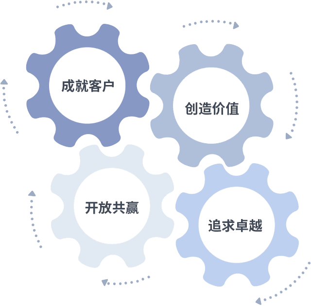 成就客户是一切决策的出发点,,,,创造价值是衡量所有工作的标准,,,追求卓越是K8凯发做事做人的态度,,,,开放共赢是K8凯发的格局也是最终的结果。。。。价值观的齿轮环环相扣,,推动着组织里的每个人不断向前。。